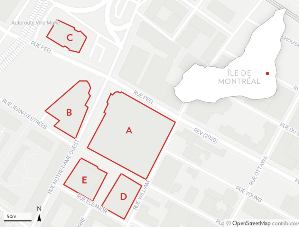 Main Hall (A) : 1100, rue Notre-Dame Ouest (corner of Peel South)